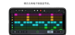 1、使用触控乐器、音频录音和乐段来录制、编配和混音乐曲,最多可达32条轨道;