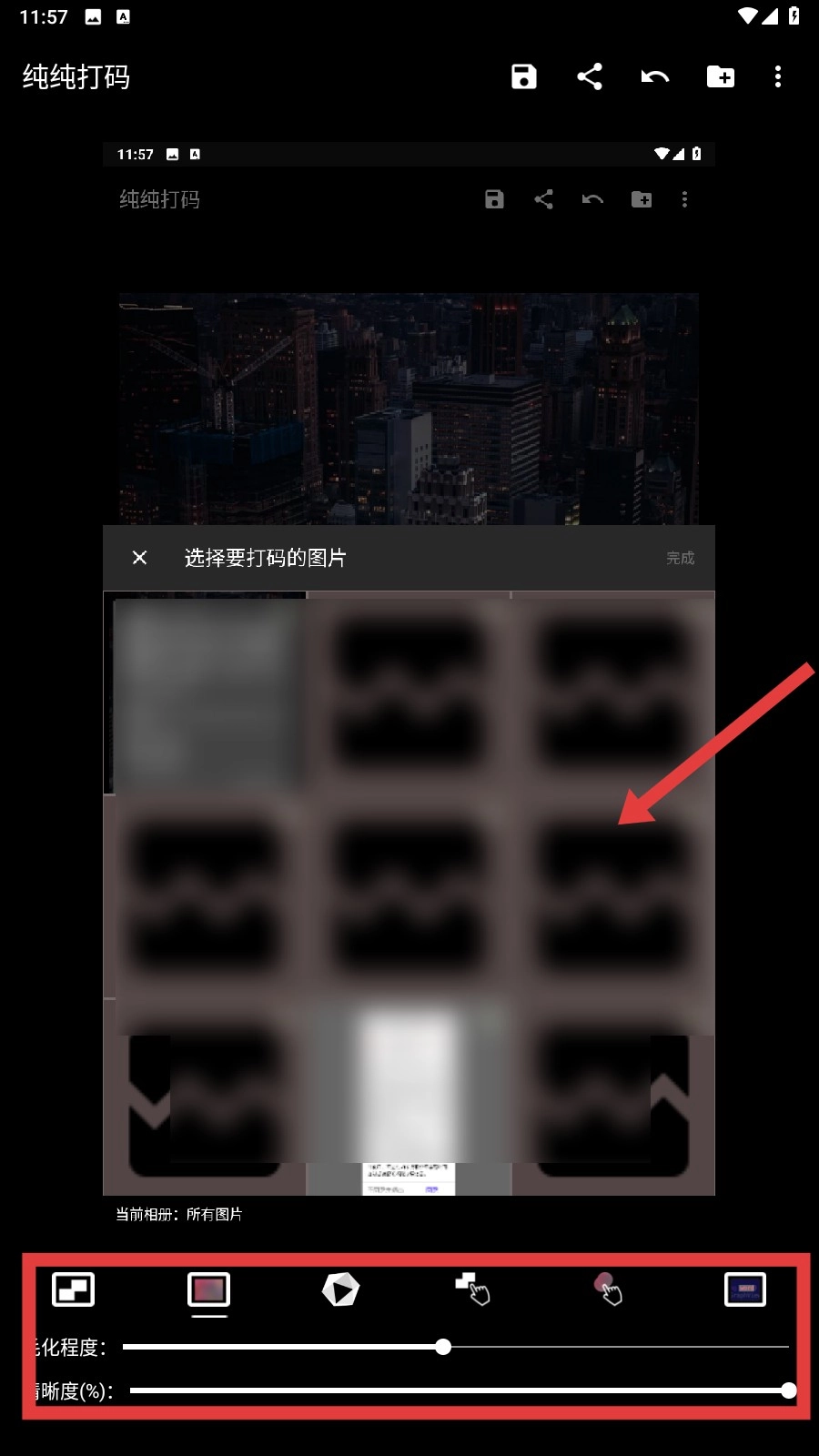 3.进入图片打码编辑页面后,借助底部的工具,对已选中的图片开展打码相关的参数设置与编辑操作