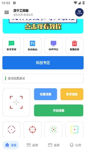 龙少工具箱是专门为吃鸡玩家设计的辅助工具平台,平台上的各类工具均可免费解锁使用,丰富多样的元素也能在这里进行调整。免费开启这款软件后,无论是哪个版本的游戏资源,都能借助它来调整画质相关内容,实用性相当强,能帮助玩家更好地进行游戏画质设置。此外,软件还提供不同样式的准星可供切换,有需求的用户可千万别错过!