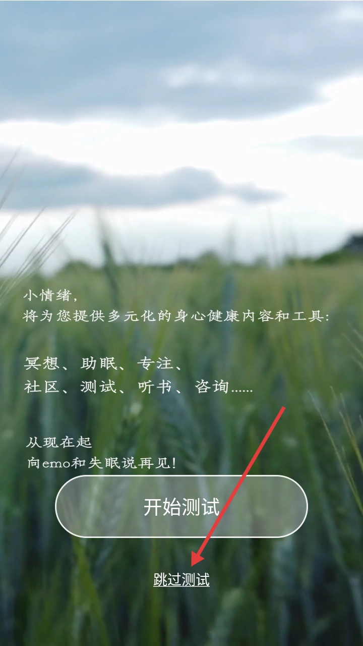 1、在启动页面点击【跳过测试】,进入主界面。