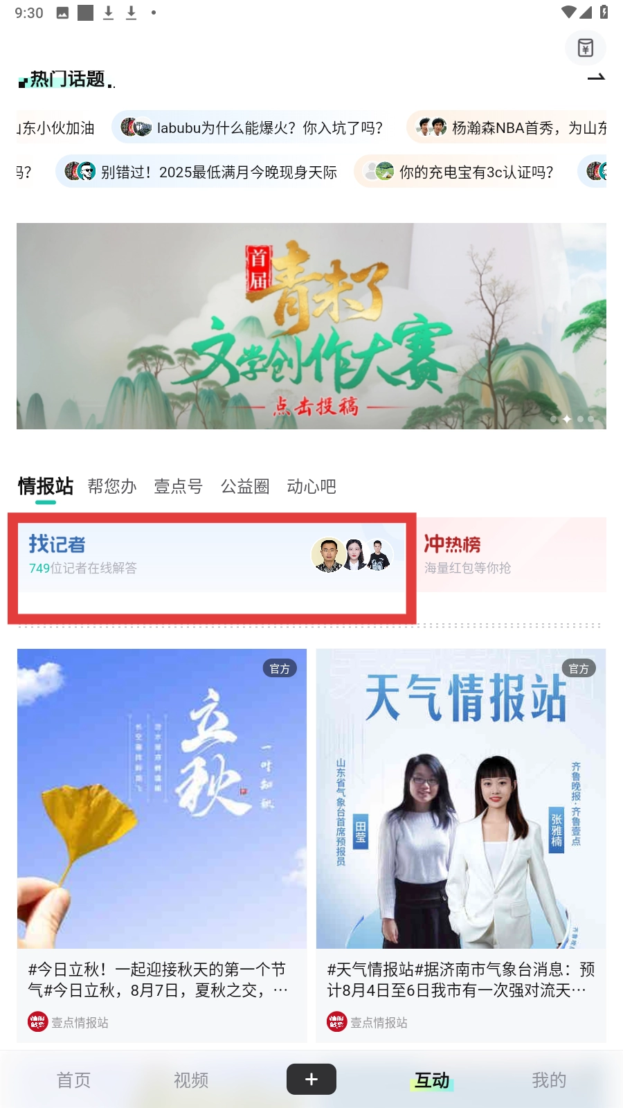 2、进入互动页面后,找到【找记者】板块,点击该板块即可进入记者列表页面。