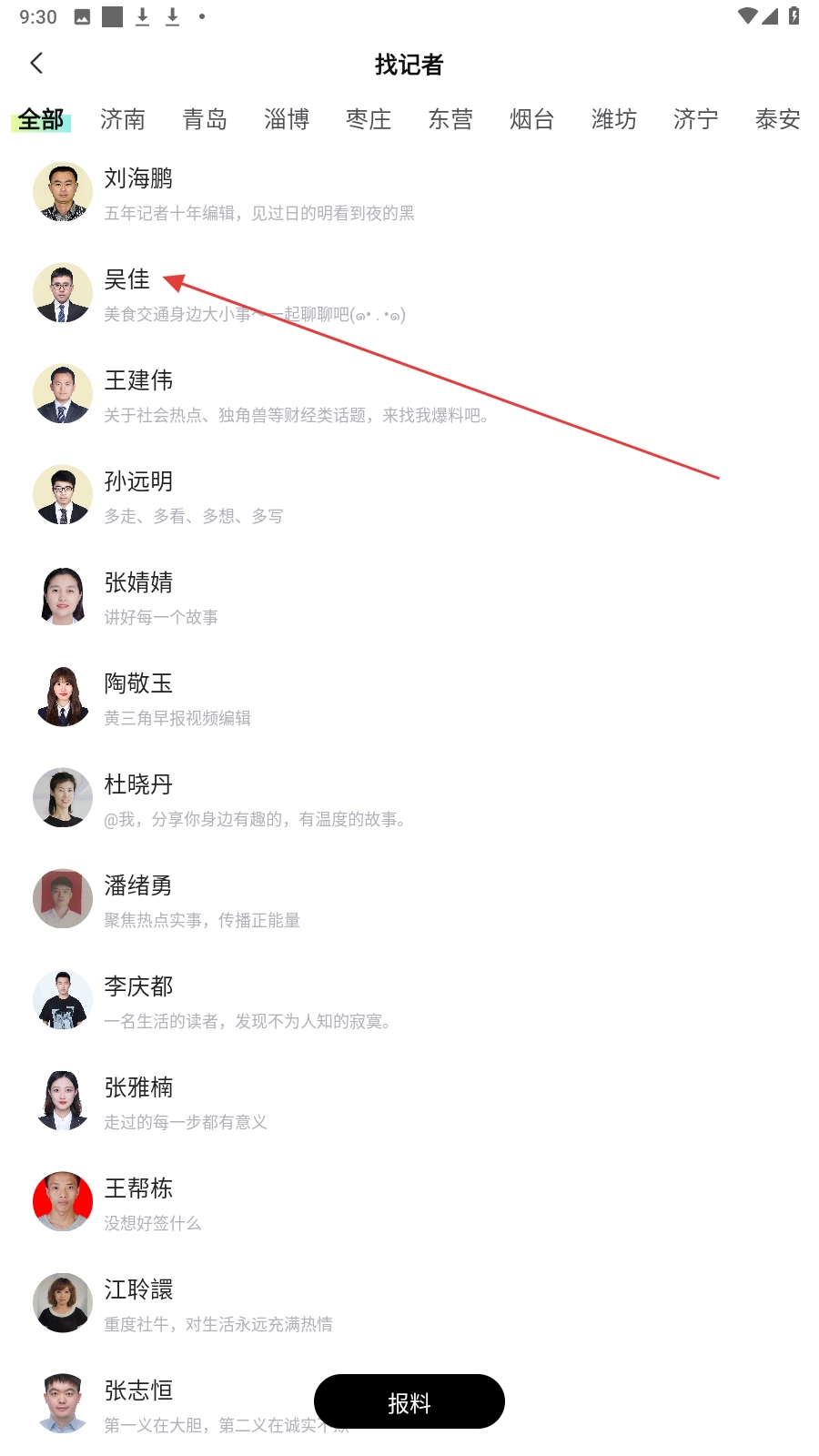 3、在记者列表中查找并选择目标记者,例如【吴佳】,随后进入该记者的个人主页。