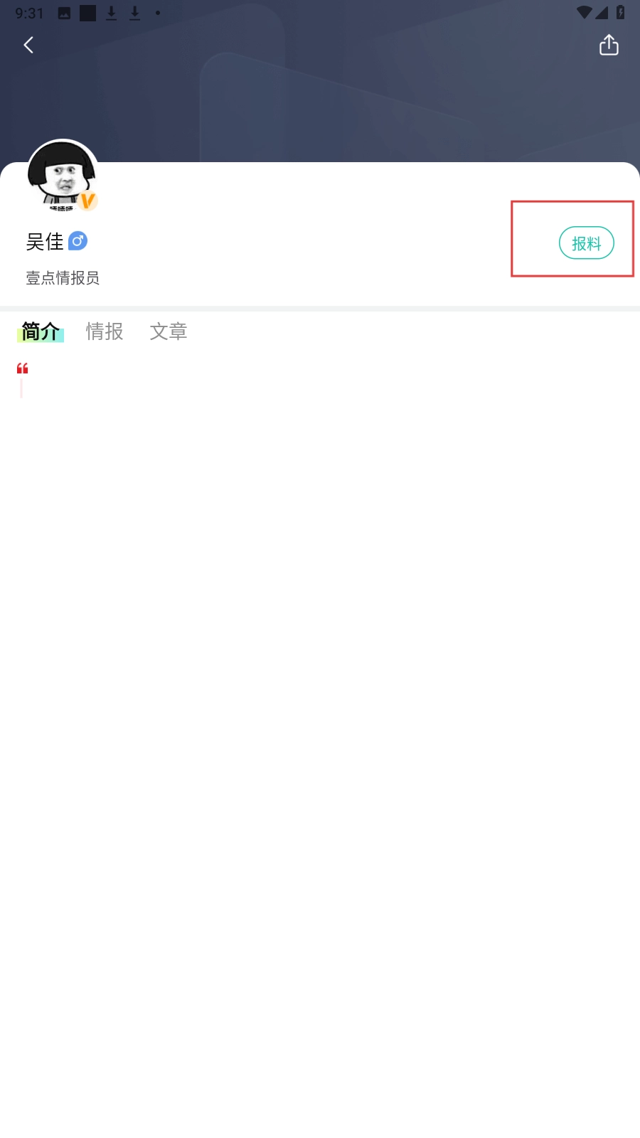 4、进入记者的个人主页后,点击【报料】按钮,即可向该记者提供新闻线索。