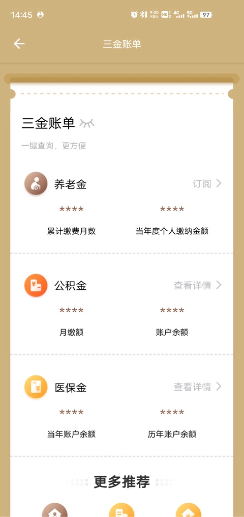 一站式订阅三金账单,实时查看三金账户信息;