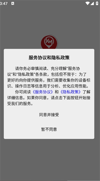 1. 并安装,点击‘同意并接受’,即可进入主页面;